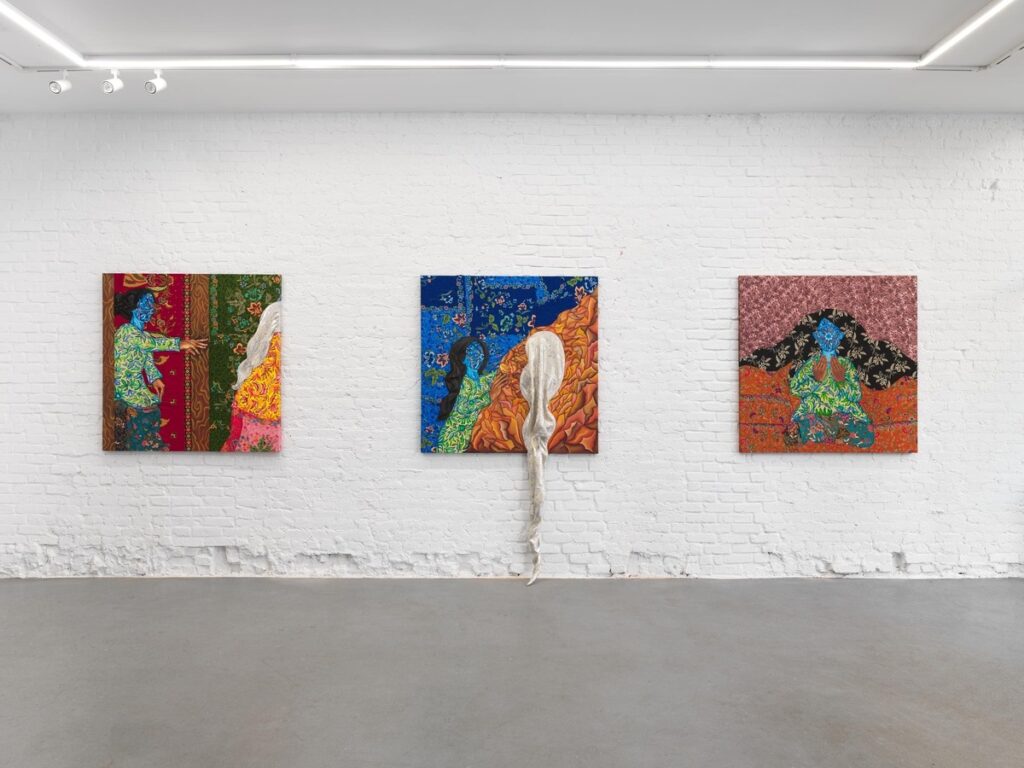Azzah’s perspective on art as an inherently political act is a bold declaration of her truth. For her, the very act of creation is a defiance, a statement, a dialogue with the world. As an artist of color, she embraces the inextricable link between her creations and her identity. Her art is a reflection of womanhood, the intricate dance of familial roles, and the echoes of her personal experiences within the realms of mental health and feminism. These themes, she believes, are political in their essence because they challenge, question, and provoke. Painting, for Azzah, is an act of preservation—capturing fleeting moments tied to her roots and lived experiences. Her brush strokes are her way of speaking about frustrations and affections, preserving what she cherishes and rebelling against what she does not. Azzah is a storyteller whose narratives unfold in hues and contours, bringing to life the emotions and moments that define her. Her culture, Azzah reveals, was not a deliberate spearhead in her artistic journey but rather an organic influence that grew as she matured and longed for the familiar comfort of home. Through Amelia’s probing, Azzah shares her poignant realization of her deep connection with her Malaysian heritage, which surfaced during a summer spent in Penang. It was the familiar, yet always refreshing, acts of bonding—journeys cramped in a car, shared meals, the warmth of extended family—that reignited her cultural identity and subsequently influenced her art.