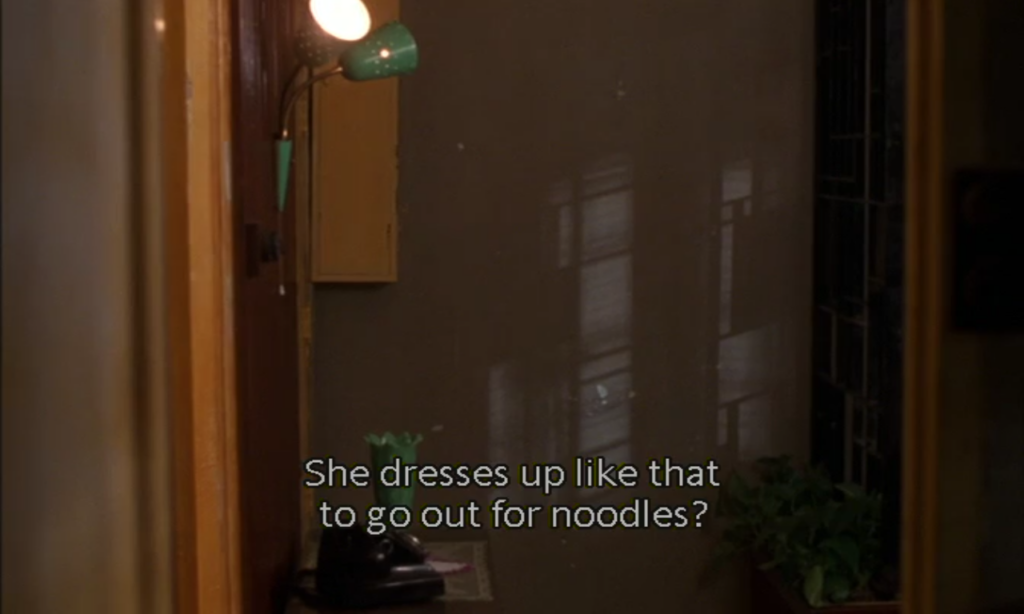 It’s nice to think that it could also be a meta-cinematic comment, urging the viewer to note how painstakingly each article of clothing is selected, how specifically representative they are, and how wonderfully imbued with artistic significance. Wong, characteristically cryptic, and ineluctably ambiguous, leaves this remark open to interpretation.