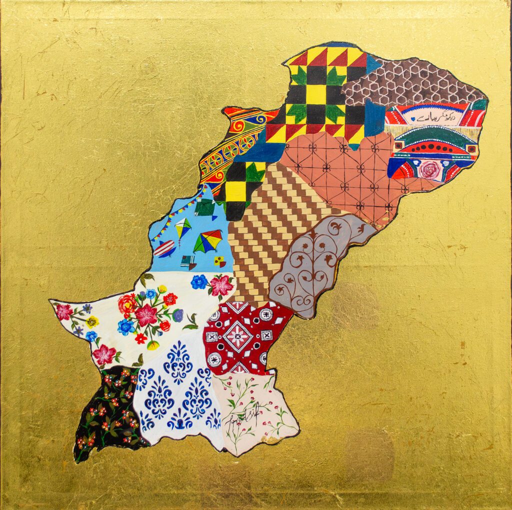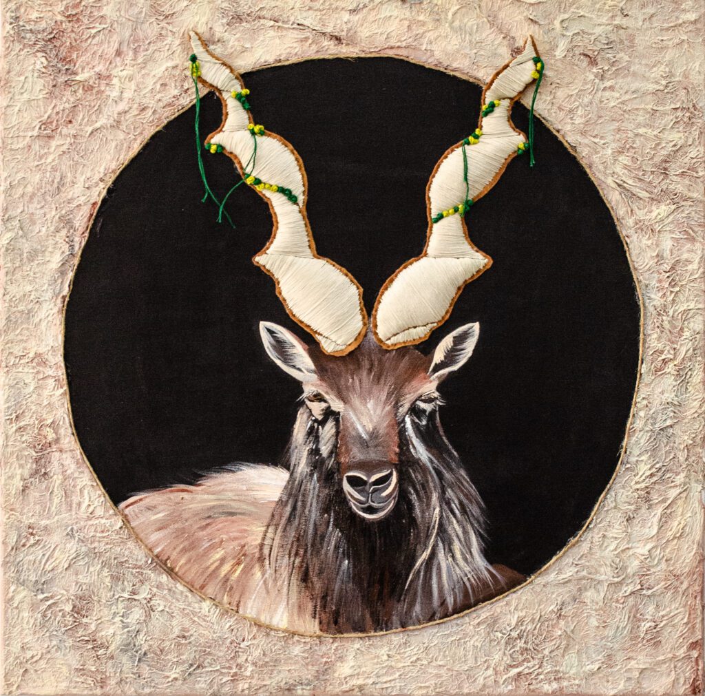 Reham, an architect and her father Abdurof, an artist also paint a woman– one who is relentless in her pursuit to safe-keep national legacies while vying for tranquillity across borders. Carved in a traditional Syrian decorative design technique called Ajami, ‘Timeless Odyssey’ focuses on the migrant woman’s journey through the long history of human civilisation. A horse, flowers, mosques, and churches trace the intricate identities of coexistence. Birds of peace soar above symbolic landmarks like the Twin Towers to represent the artist’s journey to Malaysia. Reham makes a joke that the painting may seem “crowded.”Yet, it is in this beautifully illustrated chaos that we see the manifold experiences of a refugee’s life, even if bounded to a limit. In one way or another, the works in Portal of Longing are a visual documentation of a particular story. Whether a hero in Baydouns’ portrait of the woman or Ahoora Jenab Zadeh’s more fraught sculpture, ‘Crossing the Rubicon,’