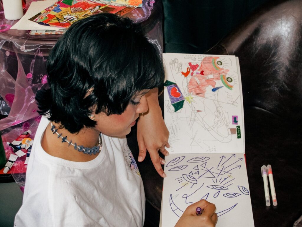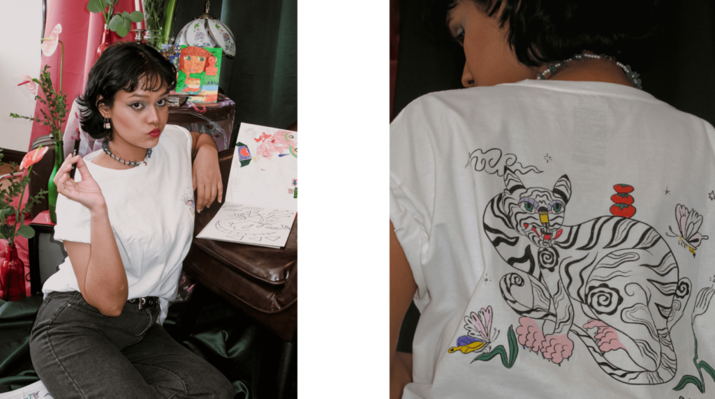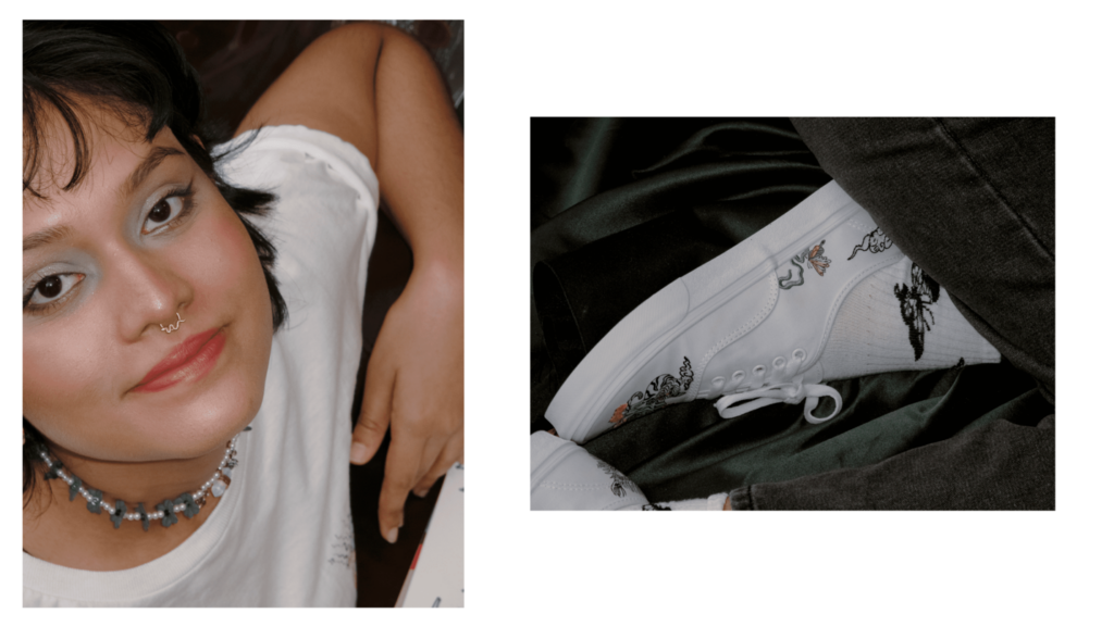 Though some might consider the dabbling of many things a sign of weakness (the saying “jack of all trades, master of none” is applied with a pinch of salt here). Anju excels best when reaching out into a state of the unknown and finding meaning and answers in it. A social chameleon, they admit to the camera, strikingly with a smile, that they would love to shapeshift into the moods of their day. When we study their intent in creating and their interest in wanting to be everything, we come to understand that in the end, we, like Anju, yearn to be seen, heard, and accepted in social spaces and communities.